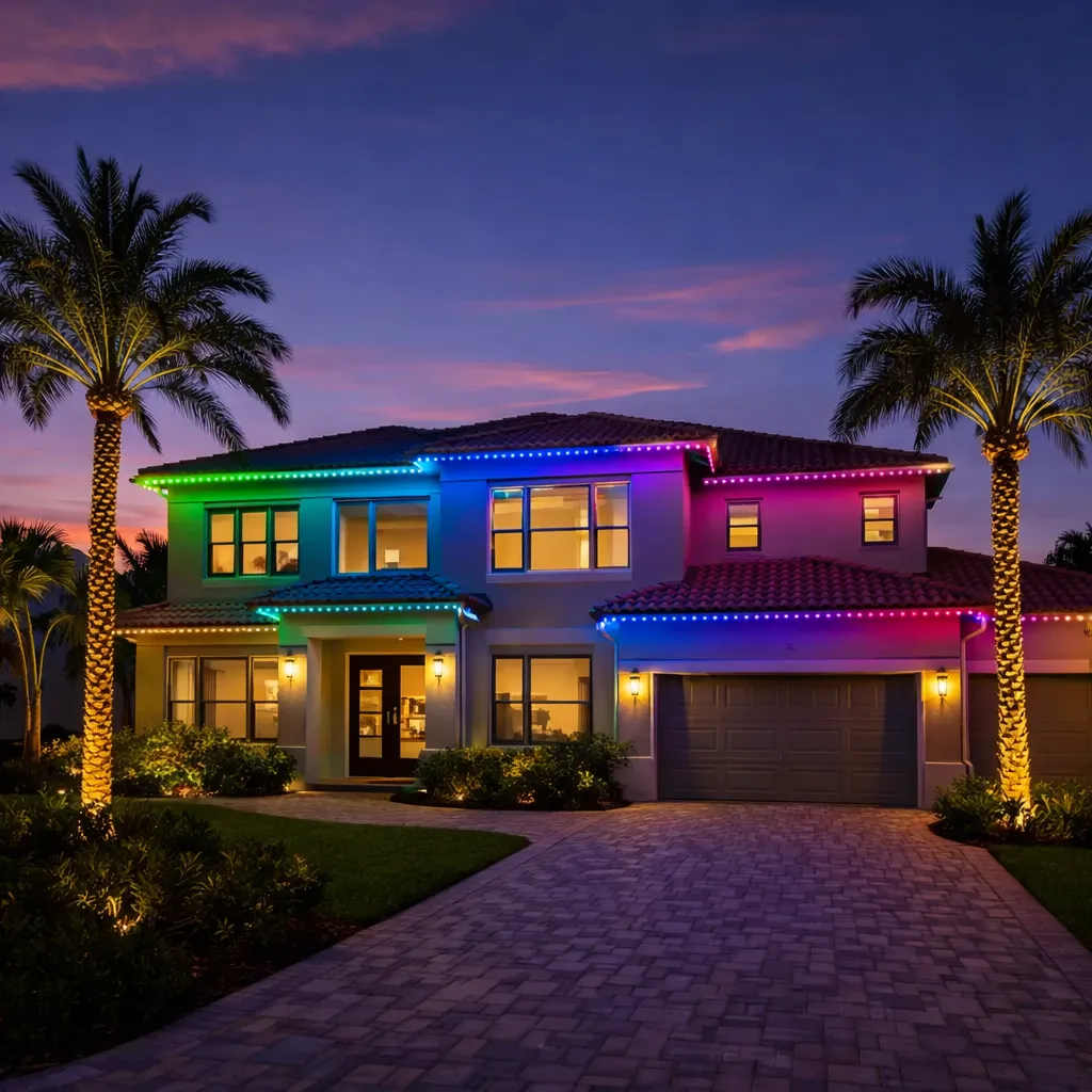 Designed to Disappear. Built to Impress. Your home deserves lighting that works year-round — without ladders, clips, or seasonal hassle. Our precision-installed roofline system stays virtually invisible by day and stunning by night. With full app control, you can shift from elegant architectural white to vibrant holiday or game-day color in seconds. Weather-resistant and built to last, it gives you effortless sophistication for every celebration — and every ordinary evening in between.