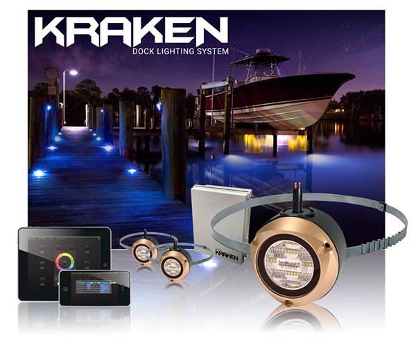 The Kraken™ Dock Lighting System brings powerful, commercial-grade performance to luxury waterfront homes, delivering over 6,000 lumens per fixture in crisp white, dual-color white/blue, or full-spectrum color. One centralized command box controls up to five underwater lights, creating dramatic illumination that transforms dark water into a stunning nighttime focal point. Fully expandable and smart-controlled from your phone or tablet, Kraken gives you complete command of your dock, seawall, and shoreline experience.